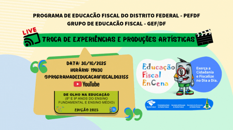 O coordenador do GEF/DF, Cícero de Melo, diz que a educação fiscal prepara o jovem, futuro contribuinte, para compreender seus direitos e deveres, entendendo melhor as garantias individuais e coletivas previstas na Constituição. “O adolescente, neste caso, passa a entender a função social do tributo, sua origem e aplicação”, ressalta o auditor fiscal. “E tudo isso por meio de uma abordagem didático-pedagógica interdisciplinar e contextualizada”, reforça Diego Wannucci, organizador das lives.